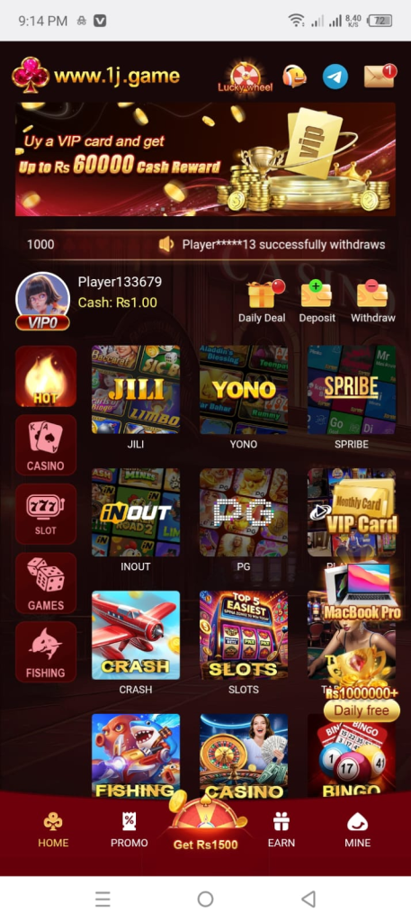 The game offers different types of simple games like slot-style games and lucky draws. Players can start with a small amount and try their luck. Sometimes users win rewards, and sometimes they may lose money, because the game mostly depends on luck. That is why it is very important to understand that 1J Game is not a guaranteed income source. It should be used for entertainment and small side earnings only.