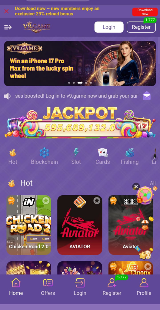 V9 Game is a mobile gaming app where users can play games and win rewards.